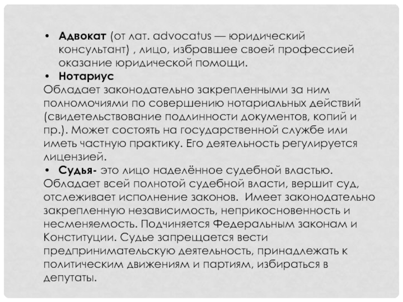 Слайд 9Адвокат (от лат. advocatus — юридический консультант) , лицо, избравшее