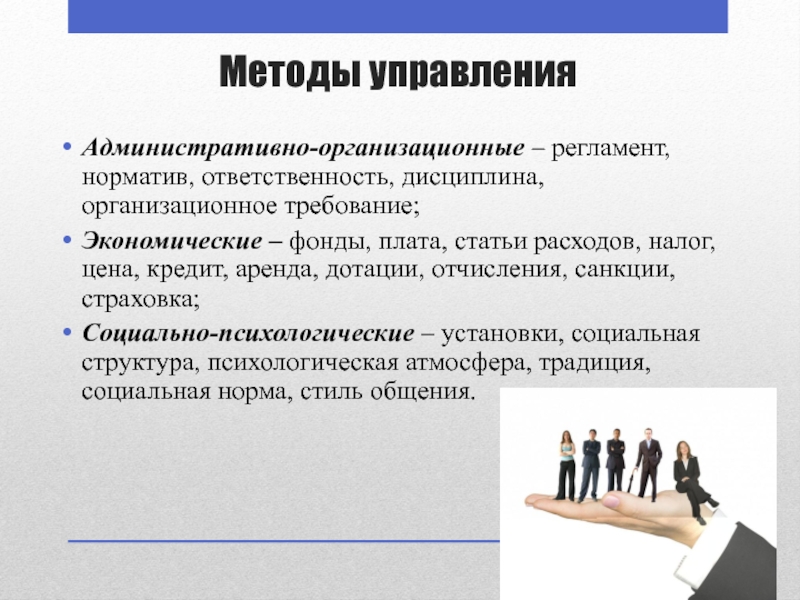Слайд 12 Эти методы управления включают в себя 3 группы: