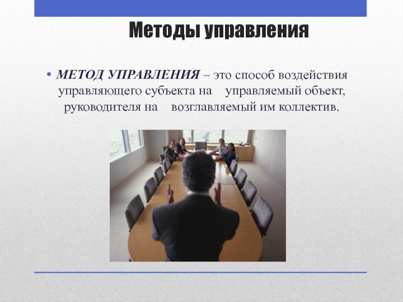 – это способ воздействия управляющего субъекта на управляемый объект,