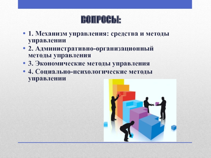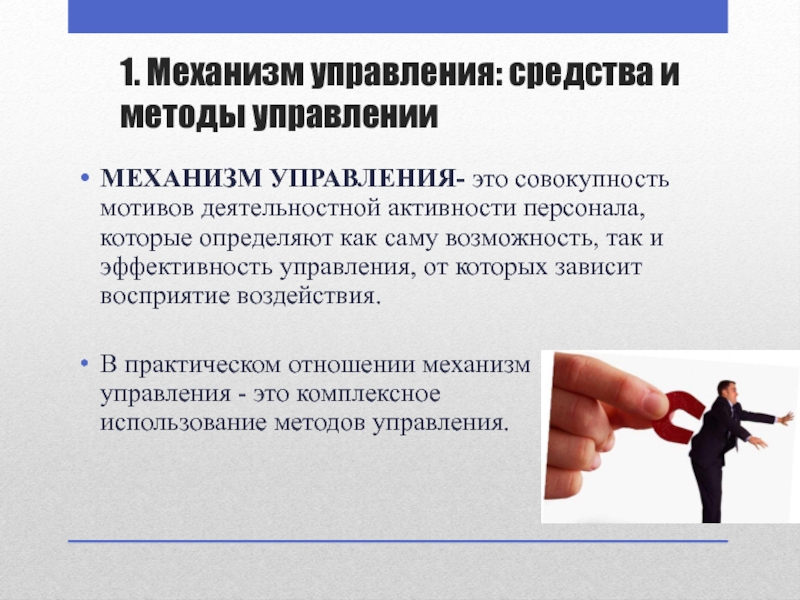 В практическом отношении механизм управления - это комплексное использование методов управления.