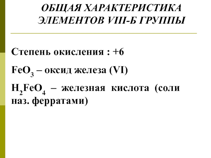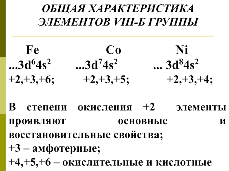 Слайд 28ОБЩАЯ ХАРАКТЕРИСТИКА ЭЛЕМЕНТОВ VIII-Б ГРУППЫ