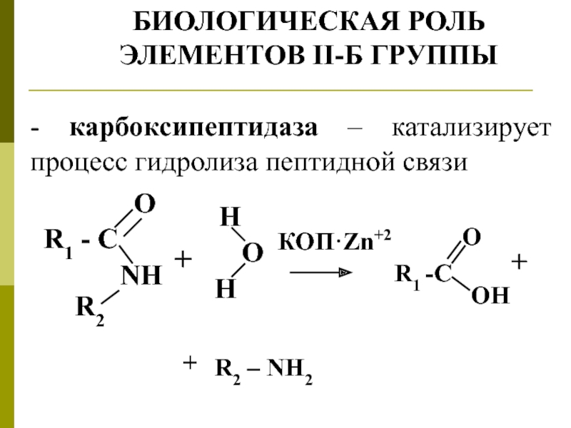 Слайд 14БИОЛОГИЧЕСКАЯ РОЛЬ d-ЭЛЕМЕНТОВ II-Б ГРУППЫ