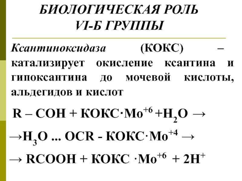Слайд 21БИОЛОГИЧЕСКАЯ РОЛЬ VI-Б ГРУППЫ