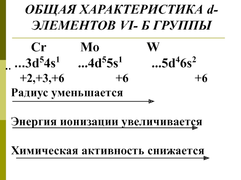 Слайд 17ОБЩАЯ ХАРАКТЕРИСТИКА d-ЭЛЕМЕНТОВ VI- Б ГРУППЫ