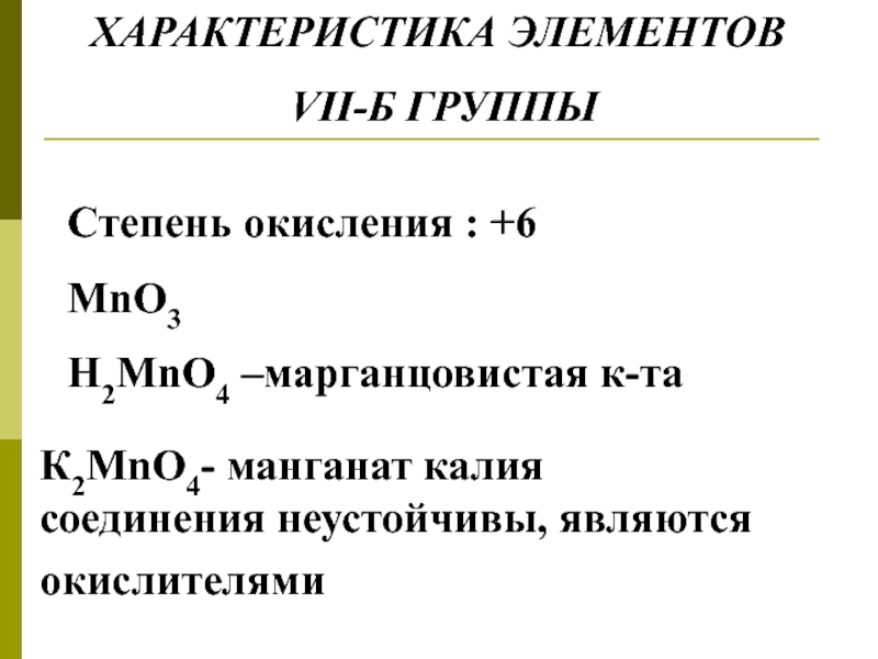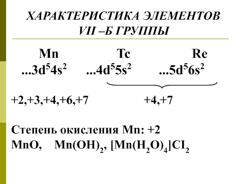 Слайд 23ХАРАКТЕРИСТИКА ЭЛЕМЕНТОВ VII-Б ГРУППЫ