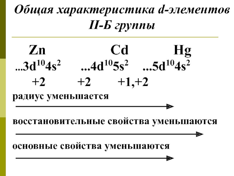 Слайд 11Общая характеристика d-элементов II-Б группы