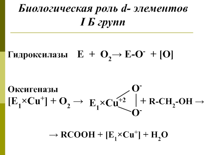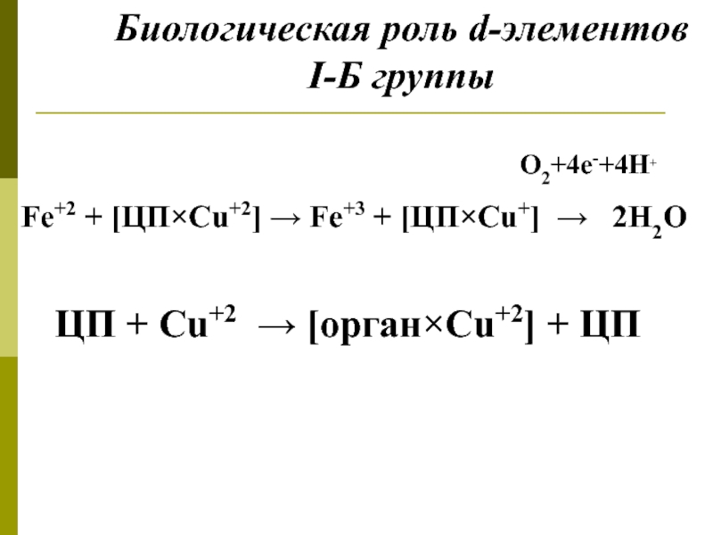 Слайд 8Биологическая роль d-элементов I-Б группы