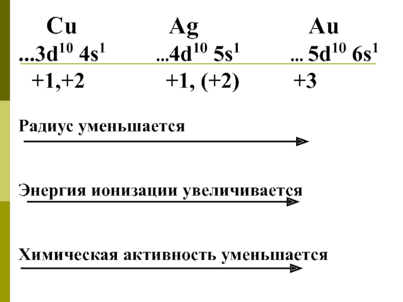 Слайд 5Cu, Ag, Au – малоактивные металлы, стоят в ряду напряжения