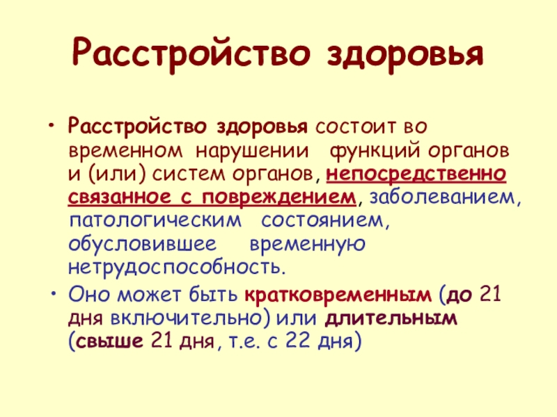 и (или) систем органов, непосредственно связанное с повреждением, заболеванием,