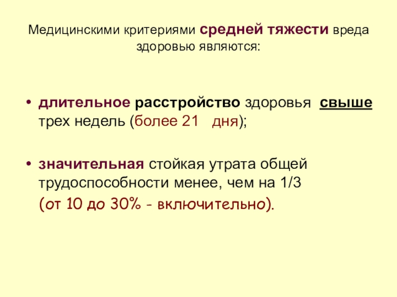 Слайд 44Медицинскими критериями средней тяжести вреда здоровью являются: