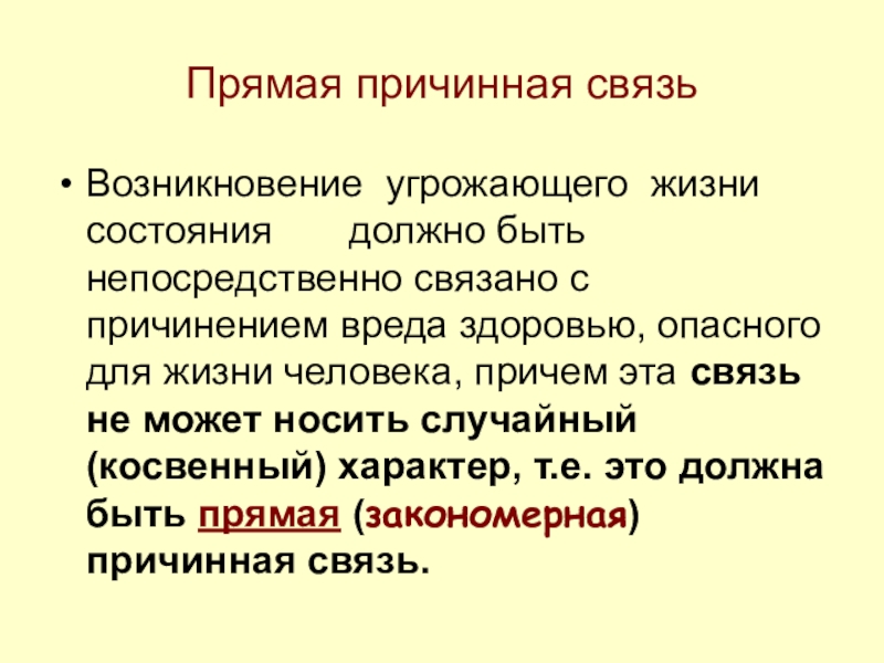 жизни человека, причем эта связь не может носить случайный (косвенный) характер, т.е. это должна быть прямая (закономерная) причинная связь.