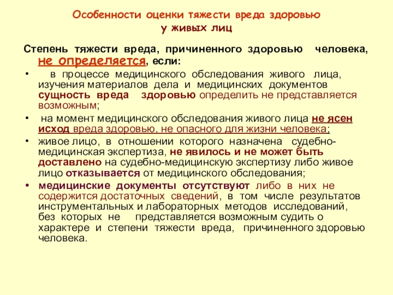 Слайд 51Особенности оценки тяжести вреда здоровью