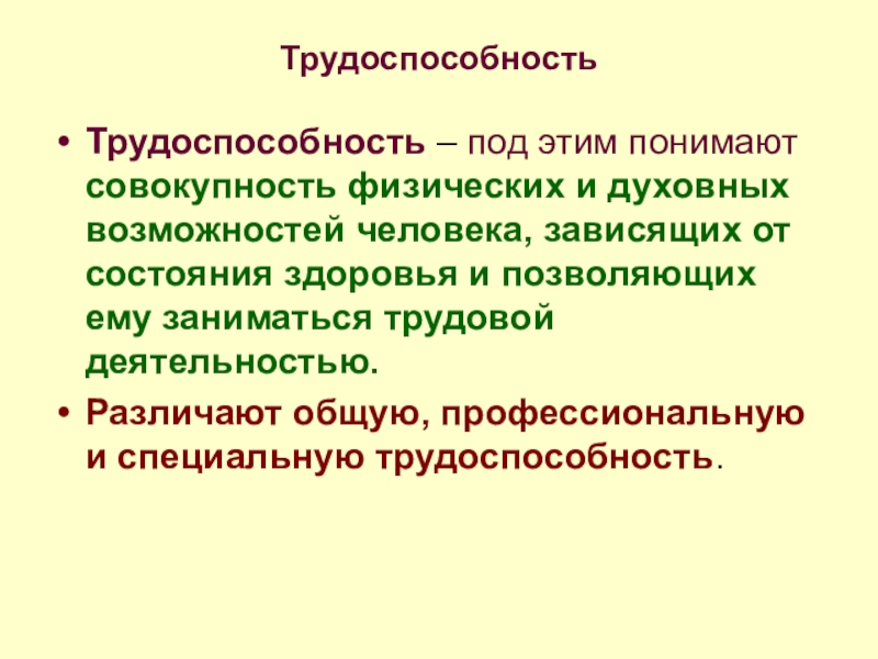 Слайд 38Общей трудоспособностью называют способность человека к неквалифицированному труду.