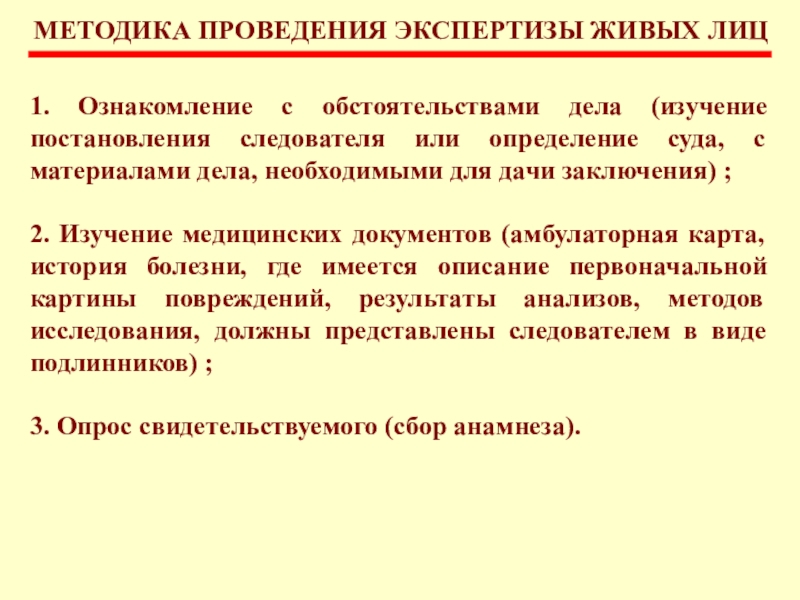 Слайд 10МЕТОДИКА ПРОВЕДЕНИЯ ЭКСПЕРТИЗЫ ЖИВЫХ ЛИЦ