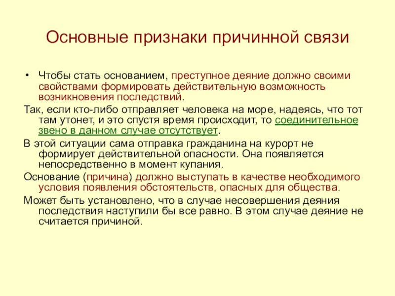 человека на море, надеясь, что тот там утонет, и это спустя время происходит, то соединительное звено в данном случае отсутствует.