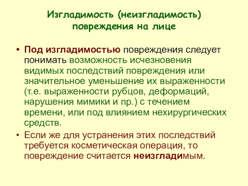 7. Является ли повреждение лица, имеющееся у пострадавшего, неизгладимым (обязательный вопрос в случае локализации повреждения на лице)?