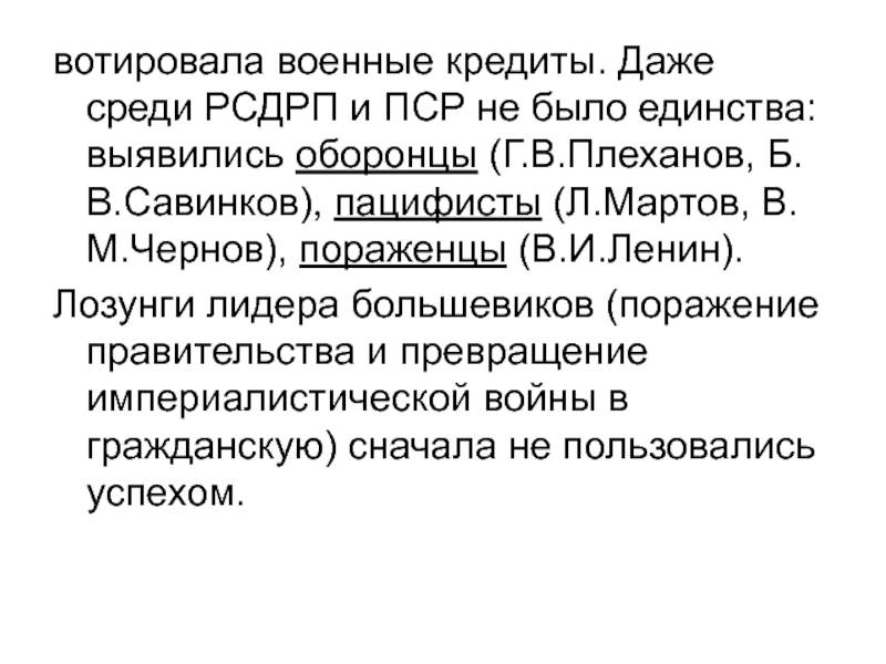 Слайд 47вотировала военные кредиты. Даже среди РСДРП и ПСР не было