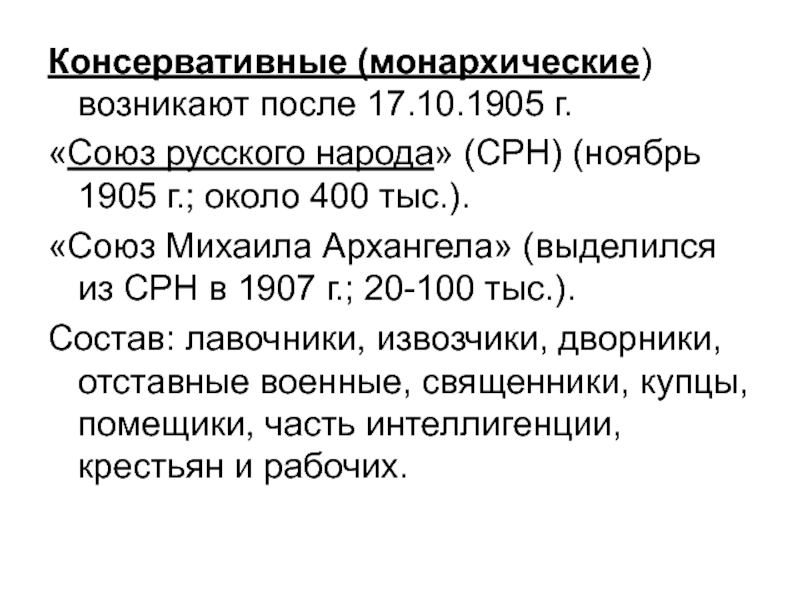 Слайд 31Консервативные (монархические) возникают после 17.10.1905 г.