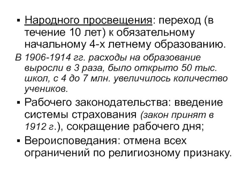 Слайд 10и свободы, создание законодательной Гос. думы («никакой закон не может