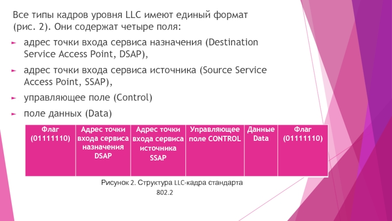 Слайд 24Все типы кадров уровня LLC имеют единый формат (рис. 2). Они