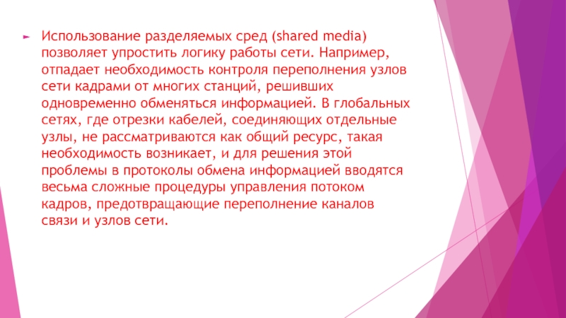 Слайд 4Использование разделяемых сред (shared media) позволяет упростить логику работы сети.