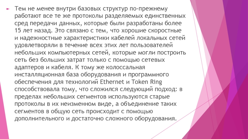 Слайд 11Несмотря на появление новых технологий, классические протоколы локальных сетей Ethernet