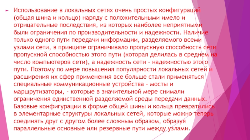 Слайд 5Использование в локальных сетях очень простых конфигураций (общая шина и