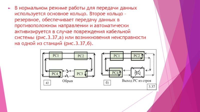 Слайд 5В нормальном режиме работы для передачи данных используется основное кольцо.