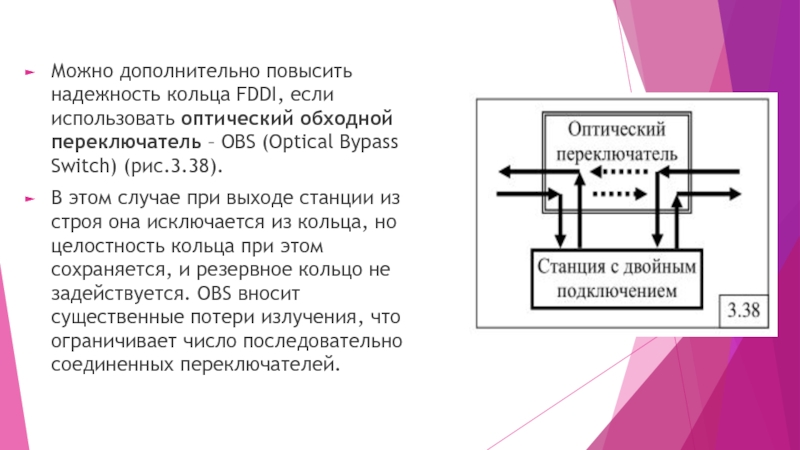 Слайд 6Можно дополнительно повысить надежность кольца FDDI, если использовать оптический обходной