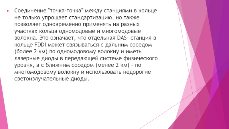 Слайд 7Соединение "точка-точка" между станциями в кольце не только упрощает стандартизацию,