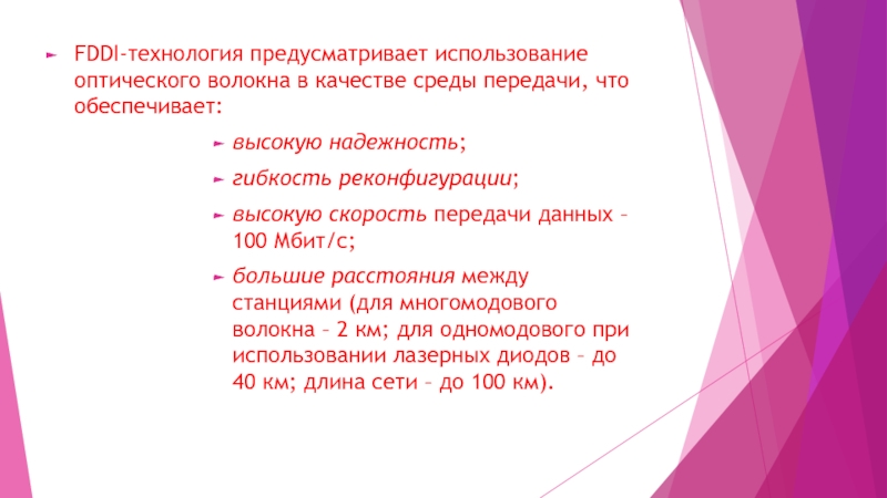 Слайд 3FDDI-технология предусматривает использование оптического волокна в качестве среды передачи, что