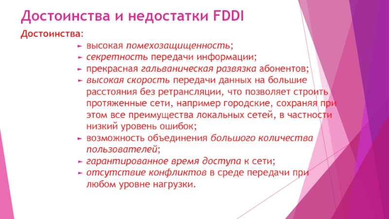Слайд 17Достоинства и недостатки FDDI