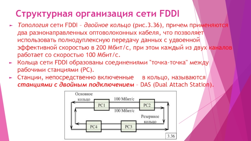 Топология сети FDDI – двойное кольцо (рис.3.36),