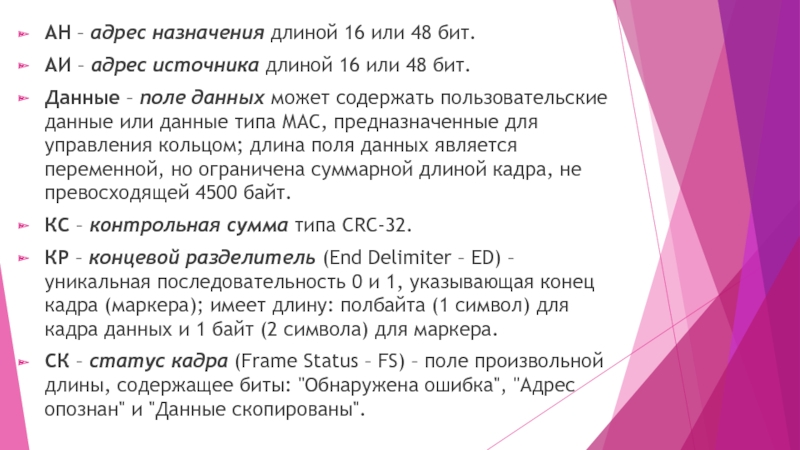 Слайд 15АН – адрес назначения длиной 16 или 48 бит.