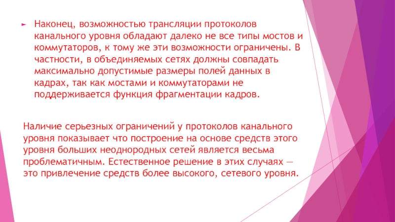 Слайд 23Наконец, возможностью трансляции протоколов канального уровня обладают далеко не все