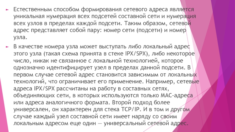 Слайд 28Естественным способом формирования сетевого адреса является уникальная нумерация всех подсетей