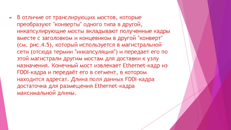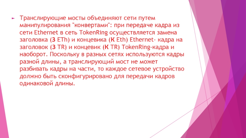Слайд 13В отличие от транслирующих мостов, которые преобразуют "конверты" одного типа