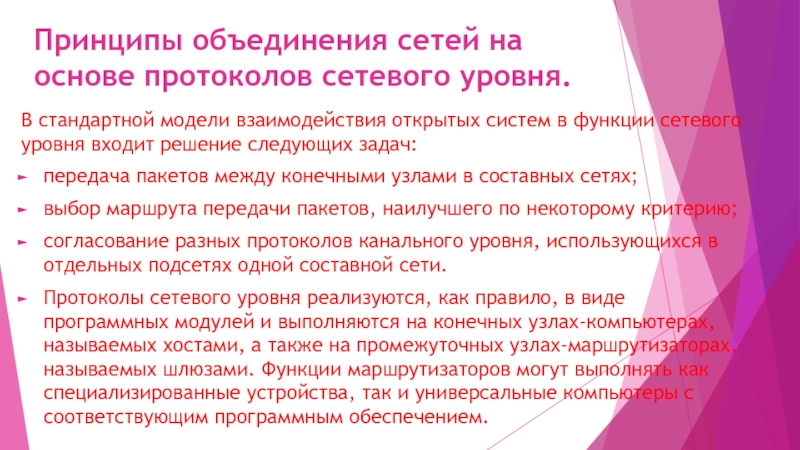 Слайд 17Принципы объединения сетей на основе протоколов сетевого уровня.