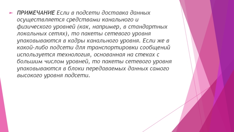 Слайд 30ПРИМЕЧАНИЕ Если в подсети доставка данных осуществляется средствами канального и