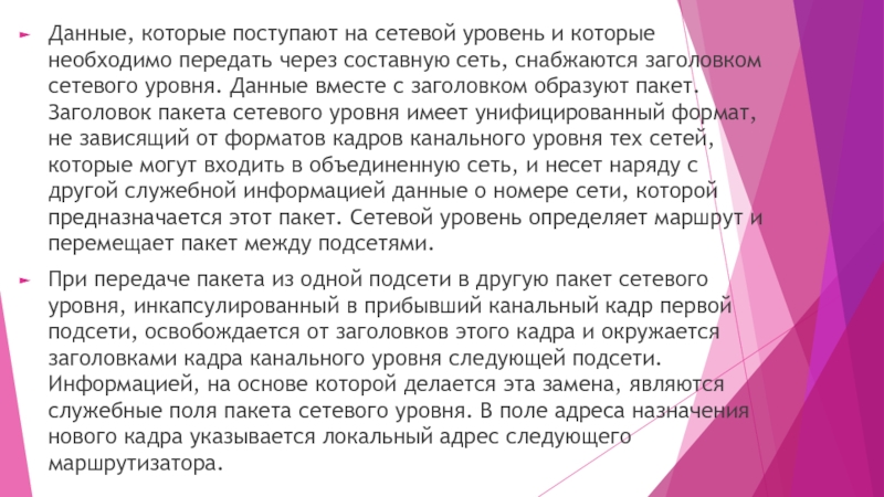 Слайд 29Данные, которые поступают на сетевой уровень и которые необходимо передать