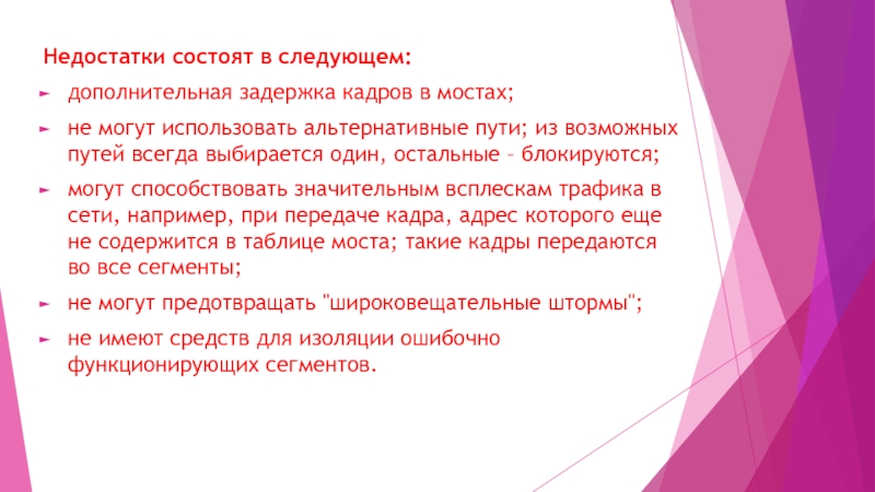 могут способствовать значительным всплескам трафика в сети, например, при передаче кадра, адрес которого еще не содержится в таблице моста; такие кадры передаются во все сегменты;