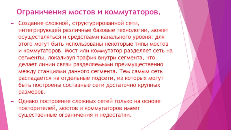 к которым относятся мосты и коммутаторы, приводит к недостаточно гибкой,