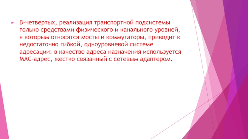Слайд 22В-четвертых, реализация транспортной подсистемы только средствами физического и канального уровней,
