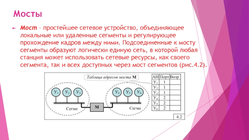 Мост – простейшее сетевое устройство, объединяющее локальные или удаленные сегменты