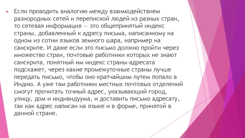 Слайд 31Если проводить аналогию между взаимодействием разнородных сетей и перепиской людей