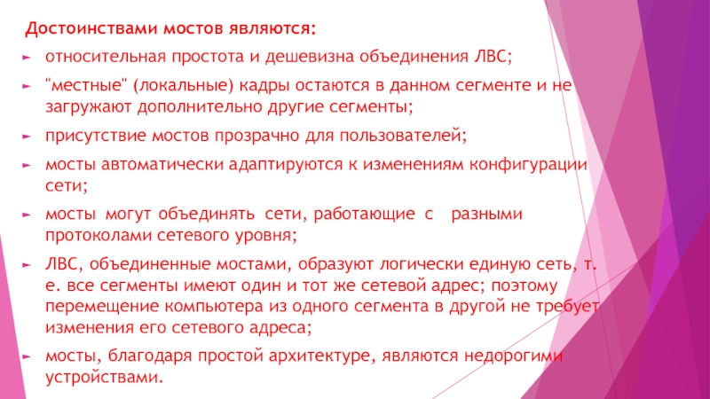 Слайд 4Мосты не нагружают работой остальные сетевые устройства – они находятся