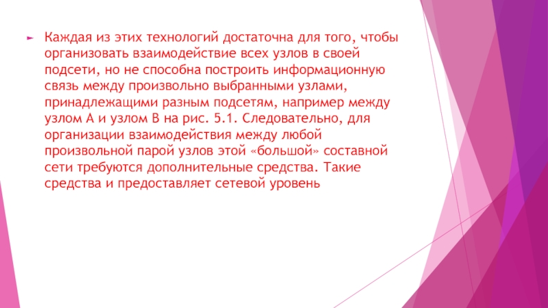 данных в пределах подсетей сетевой уровень обращается к используемым в этих. подсетях технологиям.