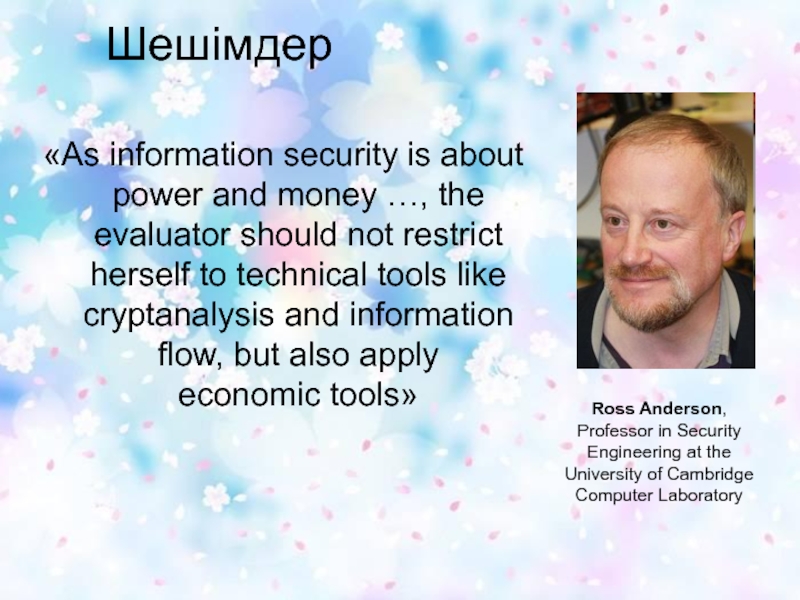 Professor in Security Engineering at the University of Cambridge Computer Laboratory