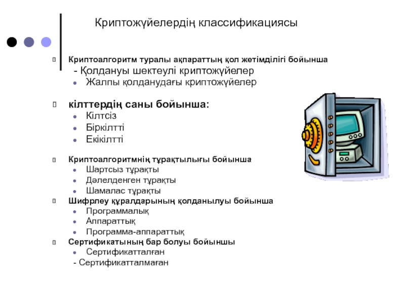 -криптоалгоритм туралы ақпараттың қол жетімділігі бойынша