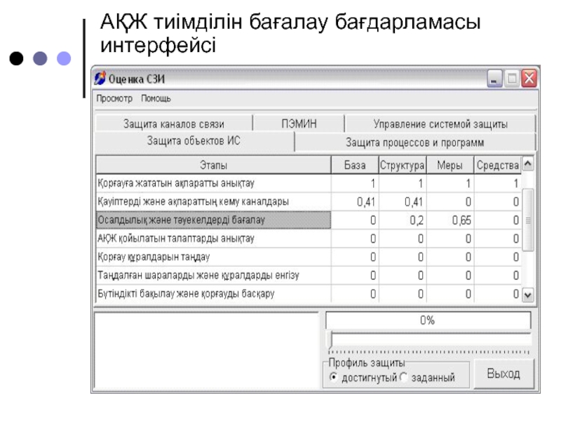 Слайд 17АҚЖ тиімділін бағалау бағдарламасы интерфейсі